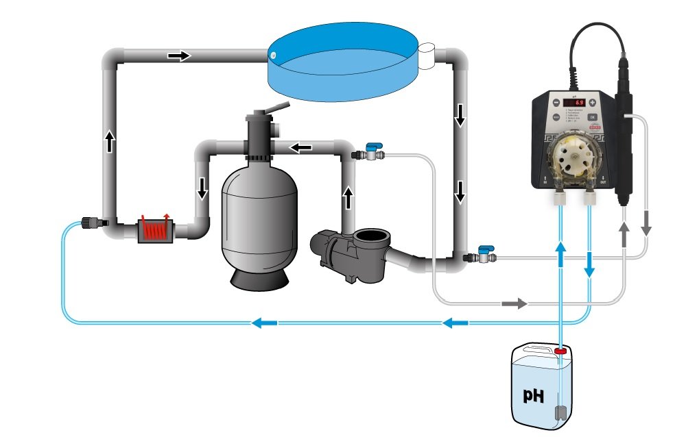 PP60 pH automaticky měří a reguluje hodnotu pH vody. Umožňuje dávkování pH–, nebo pH+.