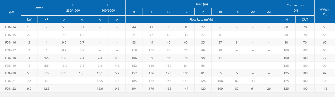 Čerpadlo FDN-18 4,0kW, 230/400V, 99 m3/h
