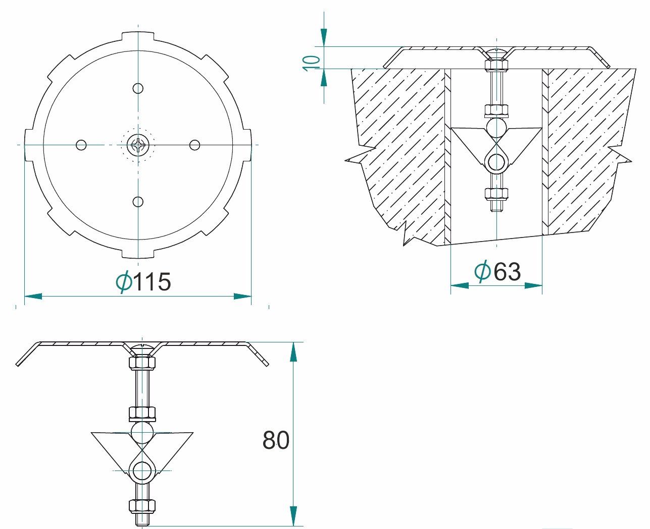 Dnová tryska FISSA nerez 115mm pro d90