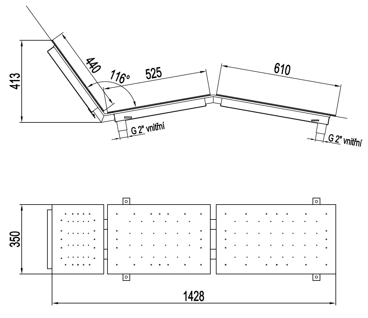 Lehátko je vyrobeno z nerezové oceli AISI 316 s povrchovou úpravou zrcadlový lesk. Dodává se ve variantách pro fóliové nebo kompozitní bazény.