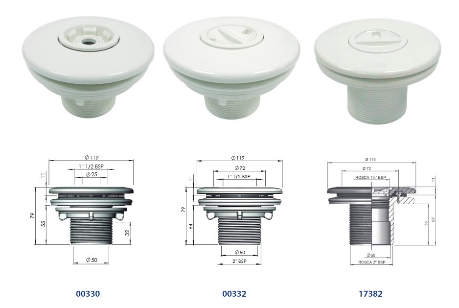 Připojení trysky je na lepení d50 nebo venkovní závit